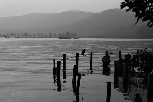 被风扬起的柳树形成包围式弧形,在柳枝下飞舞的小鸟为画面平添了趣味。画面大气而不失柔和,简洁而不失细节,结构新颖脱俗让人可圈可点。巧借发芽柳枝作前景,衬托远处风景是较为成熟的处理方法。