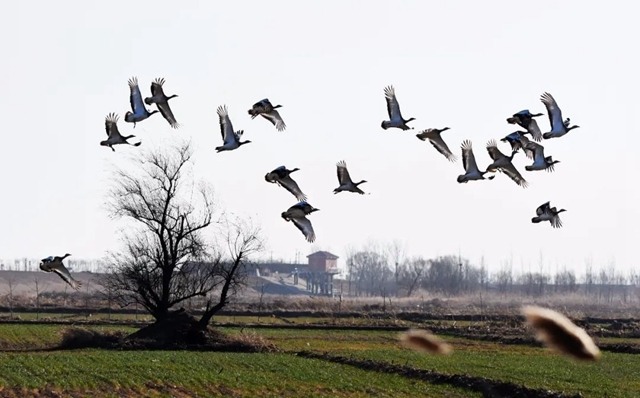 画面很好利用了包围式结构,前景柳树与远景古塔建筑的结合,以及点缀中起舞的小鸟加盟,展现出初春特有的魅力。作者有意将大面积被风刮起的柳枝充满画面,使得画面结构新颖、愉悦
