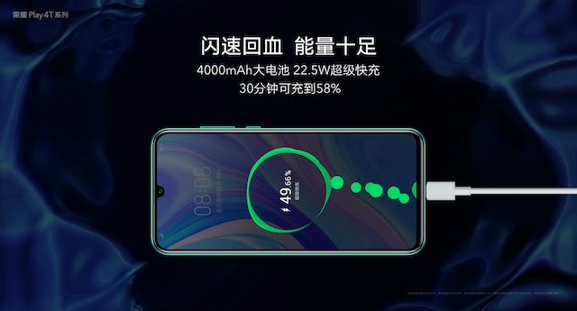 同时,荣耀还为 Play4T Pro 配备了 22.5W 超级快充,仅 30 分钟便能充到 58% 电量,让年轻人告别续航焦虑。