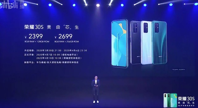 3 月 30 日,荣耀以线上云发布的形式正式发布旗下荣耀 30 系列首款产品、青年潮旗舰荣耀 30S。