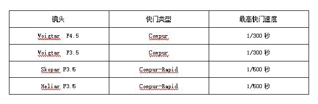 S 型摄影镜头的四种不同的快门镜头组合: