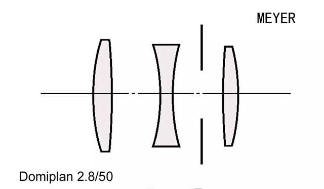 它和蔡司镜头一样,有自己独特的镜头结构。作为历史悠久的独立镜头生产商,它和伊哈格公司一直有着密切的合作。Domiplan 是梅耶(MEYER)提供给伊哈格相机配套的一个品种。