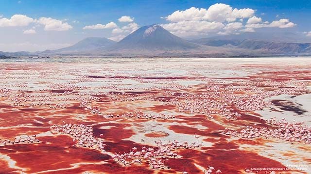 其中陆鬣蜥在费尔南迪纳岛火山口底部产卵的壮观场景,仅在 20 世纪 90 年代被拍摄过一次,《完美星球》是首个运用无人机技术对此进行拍摄的摄制组;另外五年一遇的 200 万只纳特龙湖小红鹳的集体繁殖场景也是《完美星球》的独家记录画面。