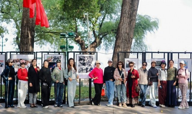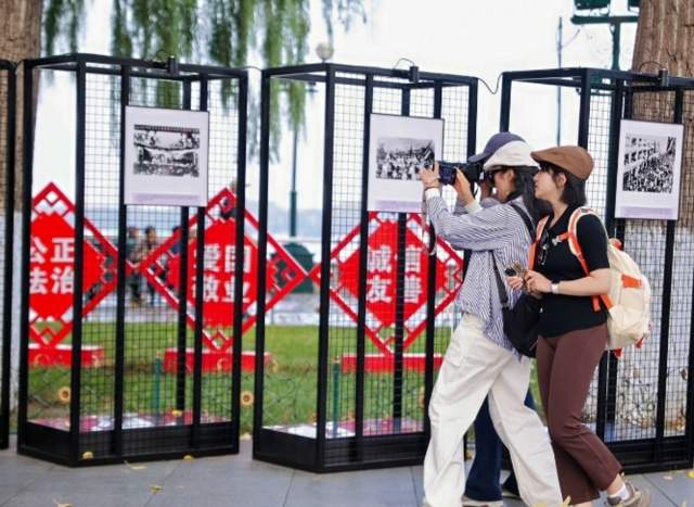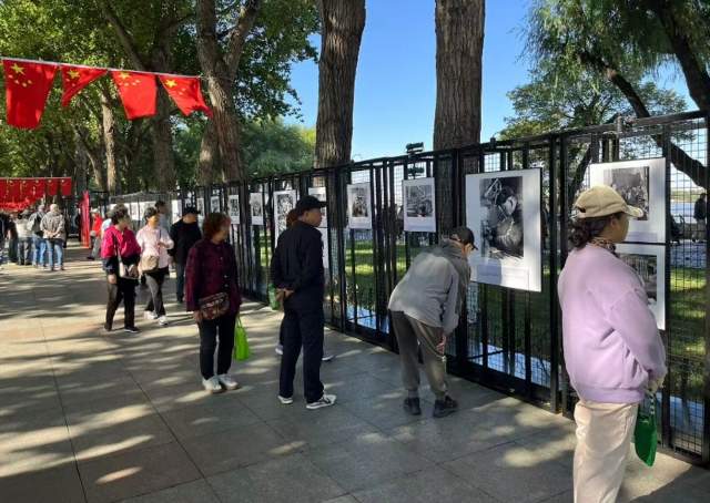 秋高气爽时节,松花江面波光粼粼,江畔的斯大林公园内树影婆娑。100 幅记录中国工运历程的珍贵图片沿江铺展,吸引众多市民与游客驻足观看,成为松花江畔一道靓丽的红色风景线。