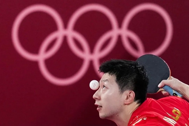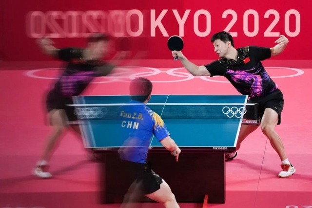 拍摄乒乓球比赛一般来说都是在场地里,离运动员够近,200-400 毫米镜头都能用到,但局限在于拍出的照片都比较传统。某些运动员的击球姿势都印在脑子里了,没拍摄之前,我都知道今天的图片会是什么样子。奥运会的赛场上再拍摄这样的照片,只是平时 N+1 的动作,实在没有太大突破,我就琢磨怎么能拍点不一样的。