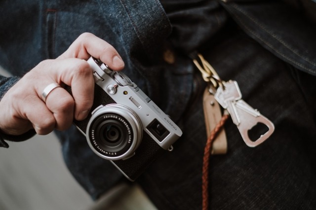 X100V 拥有经典的机身设计,其顶部和底部的铝板均由整块的铝片打磨而成,这使得机身精致而经典,边缘干净利落。同时采用了漂亮的电化铝缎纹涂层,对相机手柄、ISO 拨盘和镜筒也进行了一些增强,使得摄影师可以更舒适地握持和操作。