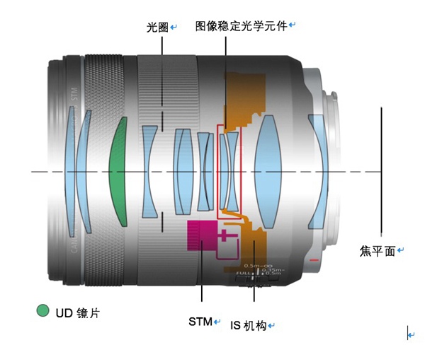 佳能采用新的模拟仿真技术,优化了 RF85mm F2 MACRO IS STM 的镜片排列和镀膜,有效抑制了鬼影、眩光和像差的产生,在多种光照条件下实现稳定的高画质表现,即使使用最大光圈拍摄也可获得稳定的图像质量。佳能在设计镜头时有效利用了 EOS R 系统所带来的大直径卡口和短后对焦距离的优势,实现了高画质和紧凑的光学结构。例如:在更靠近成像平面的位置放置大口径镜片,使镜头边缘的高画质和光学结构小型化得以并存。该镜头包含了一枚有效抑制像差的 UD 镜片,可有效地减少对焦平面前后可能发生的轴向色差,实现了从无限远到近摄范围内可靠的高画质表现。此外,优化了 RF85mm F2 MACRO IS STM 内部驱动部件的位置,实现了没有凸起的整洁的镜头设计。