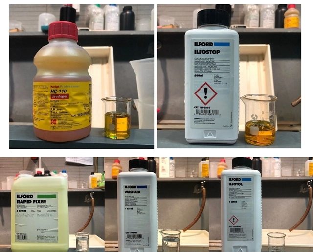 冲洗胶片的药液常见的有依尔福和柯达两个品牌,除了显影外相差不大,富士的去海波液和防水渍液效果同样出众,值得一试。在依尔福与柯达的众多胶片显影液中,我个人比较推荐柯达 HC-110,它容易储存、配比方便、适用胶片类型广泛。