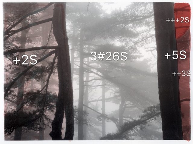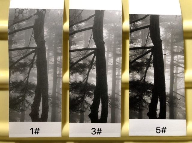 为了防止混淆,可以用铅笔在试条背面记下反差号和曝光时间,待找到准确曝光时间后,就可以整体放大一张查看效果。