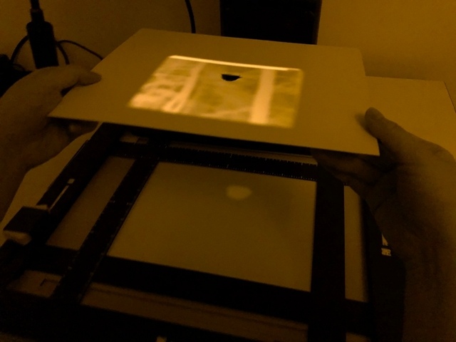将适宜放大的底片用气吹吹干净之后,就可以放进片夹了。常常有朋友问我, 到底底片的正面朝上还是朝下?答案是相纸药膜面与胶片药膜面 “面对面”,记住 face to face 就不会错了。