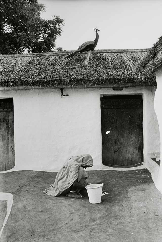 乔蒂·巴特,《巴纳斯塔里村(拉贾斯坦邦)的一个庭院》,1972,明胶银盐印相。图片由艺术与摄影博物馆(MAP)提供,班加罗尔
