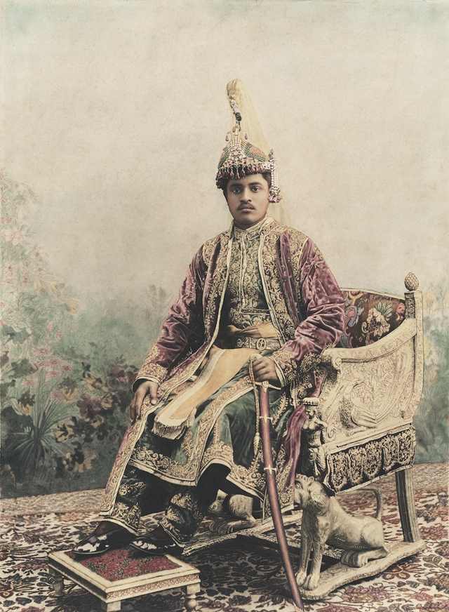约翰逊 &霍夫曼,《王公巴格瓦蒂·普拉萨德·辛格爵士》,c. 1900,手工上色铂印相。图片由艺术与摄影博物馆(MAP)提供,班加罗尔