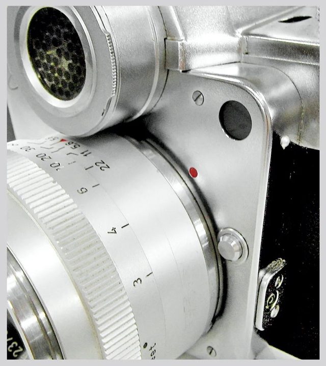 但这与我们熟悉的现代相机上的 “收缩光圈测光” 不是一回事儿,它不是测量通过镜头的光线(TTL),而只是测量 “独眼” 外的机外测光数值。