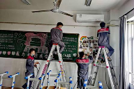 从下午 2 时开始,格力空调安装队连续作业,工作至深夜,将海口市英才小学需安装的 108 台空调全部 “上墙”。安装工王师傅在现场工作时说道:“能为老师和孩子们服务,真的很开心、很兴奋,我们都做好了要加班的准备,因为这里的学生明天就要开学了,今天把空调装好,孩子们明天上课时就能吹上空调了”。